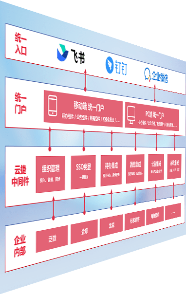 对协作平台提供支持服务,,,支持企业应用与协作平台对接,,,,包含组织同步、、消息集成、、、、待办集成等。。。支持目前主流的协作平台:钉钉、、、、企微和飞书。。。